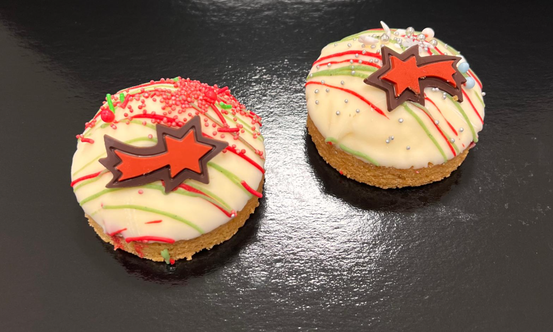 tarwebloem, suiker, roomboter (melk), room (melk), water, ei, amandelen, cacaoboter, melkpoeder, gemodificeerd zetmeel(E1414), cacaomassa, weipoeder (melk), plantaardig vet(palm, palmpit), invertsuikerstroop, rijsmiddel(E450, E500), glucosestroop, bakkerszout, ei-eiwit, aardappelzetmeel, zout, kaliumjodide, tarwemoutbloem, enzymen, dextrose, citroenvezel, aroma, melkeiwit, plantaardige olie (raapzaad) (), antiklontermiddel(E535), conserveermiddel(E202), emulgator(E322 (soja), E471, E482, E472a), geleermiddel(E450, E339, E516), kleurstof(E160a, E160c), natuurlijk aroma(vanille), plantaardige olie(raapzaad), stabilisator(E407), verdikkingsmiddel(E401, E407), voedingszuur(E263)